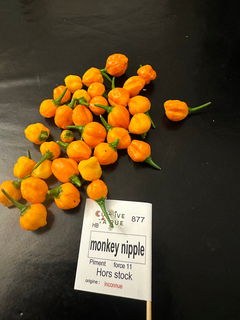 La forme est plutôt ronde et légèrement ovoïde et plissé, la traduction de son nom est littéralement mamelon de singe.