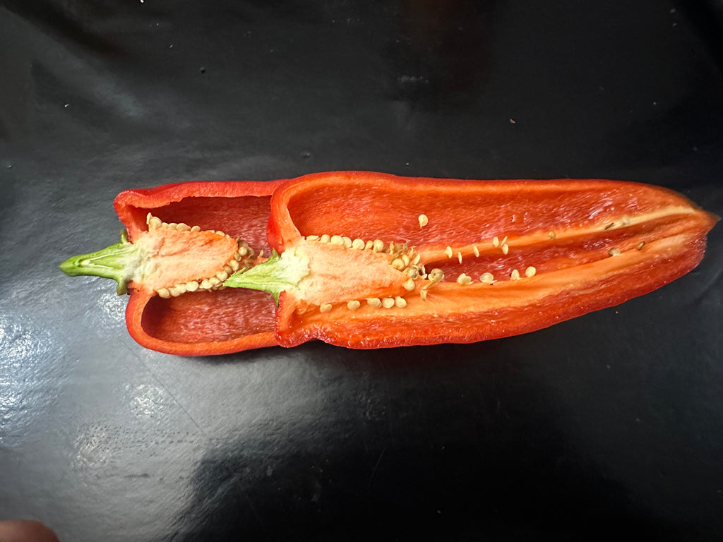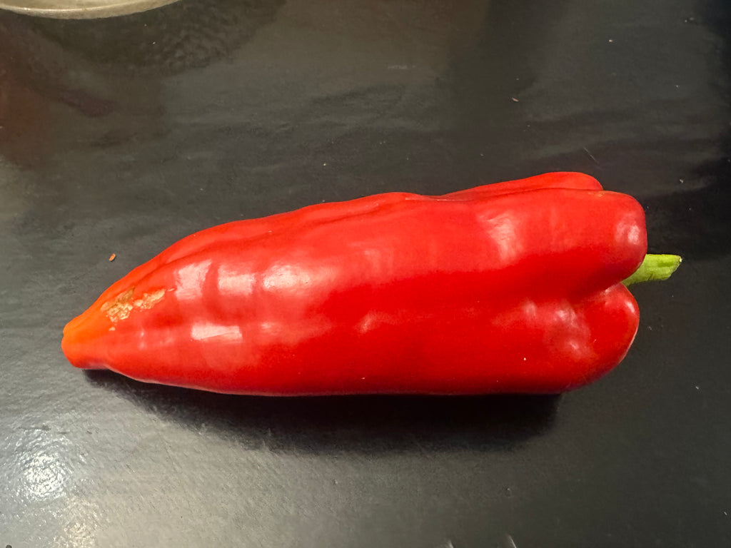 Poivron de type "corne" qui murit du vert au rouge.
