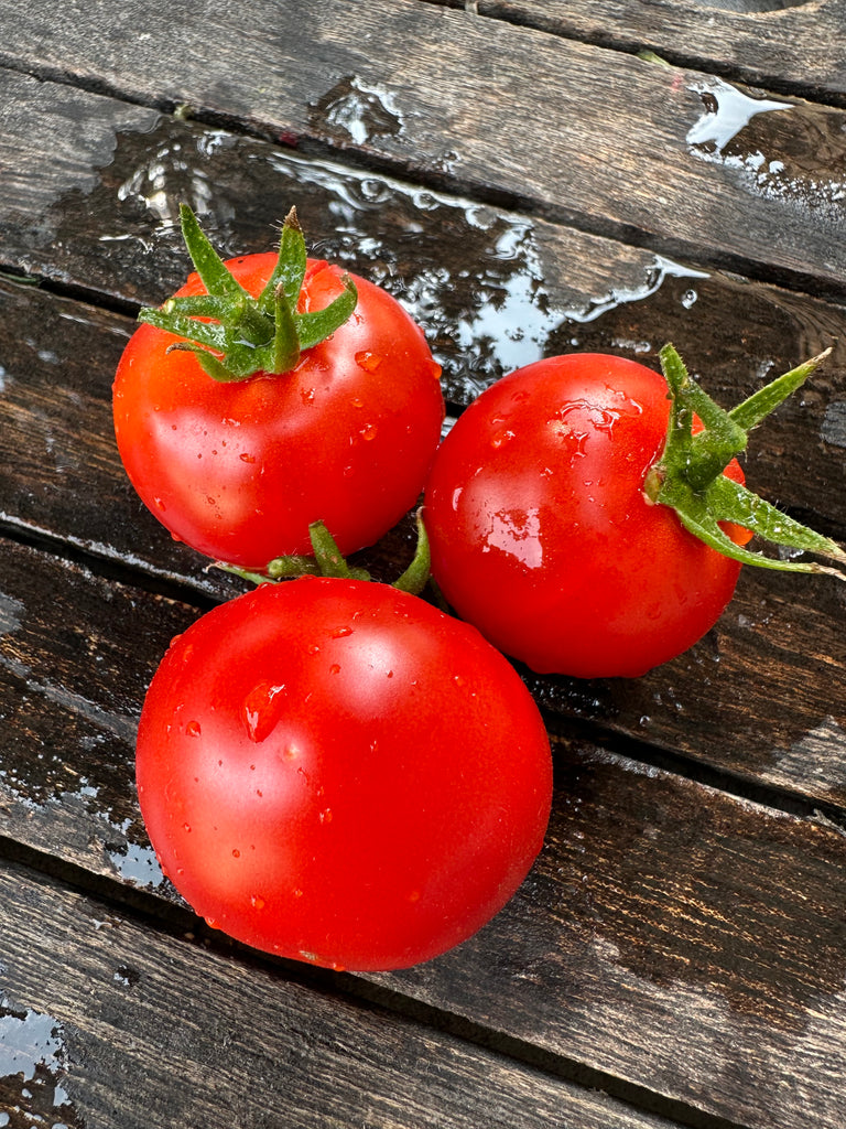 Fruits de 100 à 180 grammes à robe rouge, brillante.