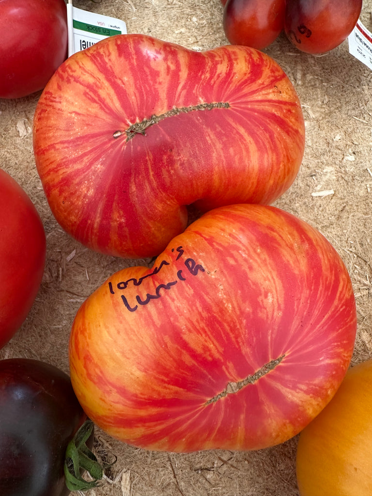Gros fruits de 200 à 400 grammes à robe bicolore mêlant le jaune et le rouge.