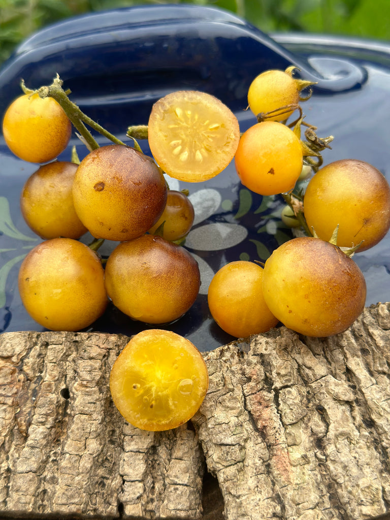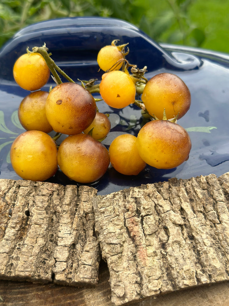 Petits fruits de type cerise jaune à faible anthocyane sur les épaules,