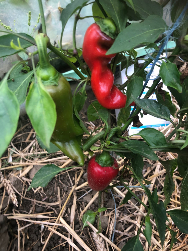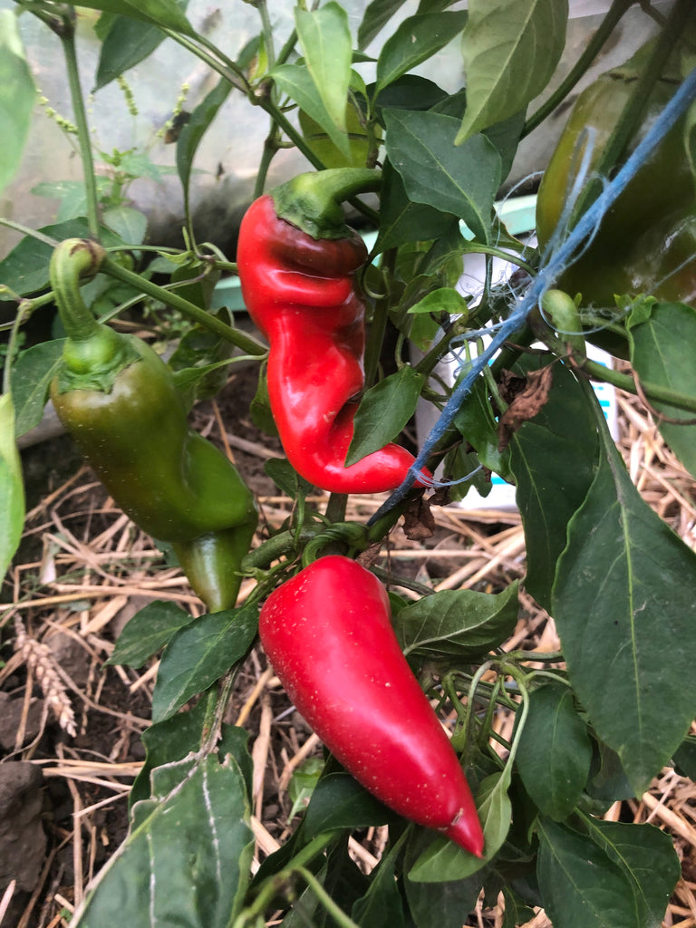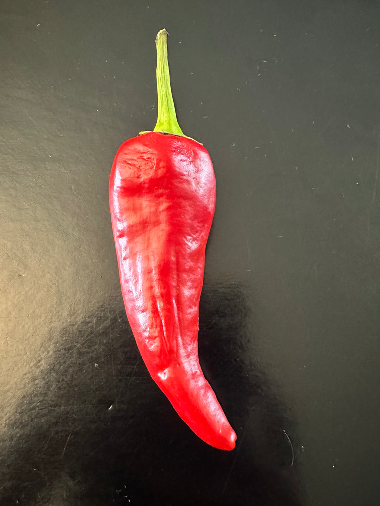 les fruits allongés et parfois tortueux passent du vert immature à un rouge brillant.