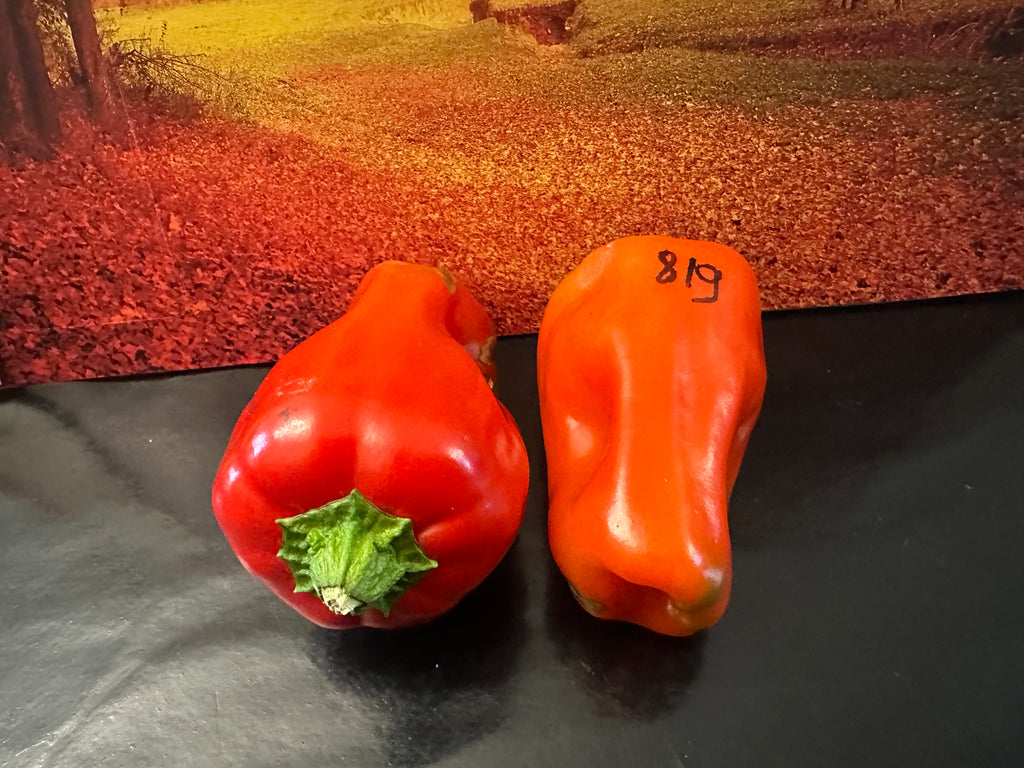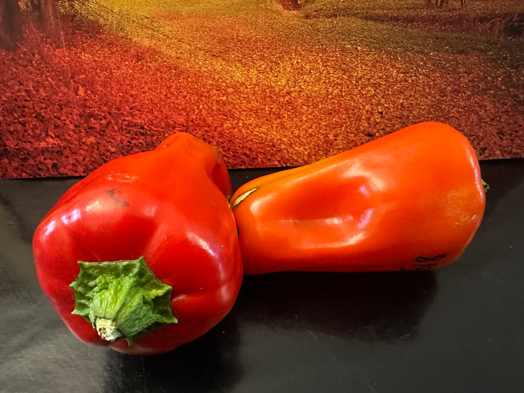 Poivron allongé d'un beau rouge tendre.