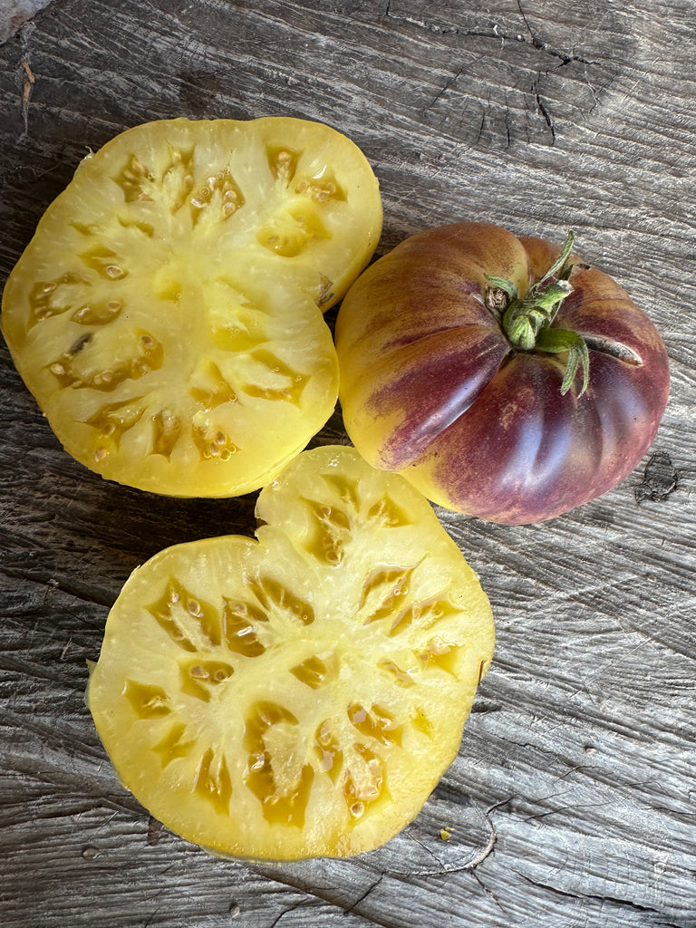 Fruits de 200 à 300 grammes à robe blanche jaunâtre et aux épaules marquées par les anthocyanes.
