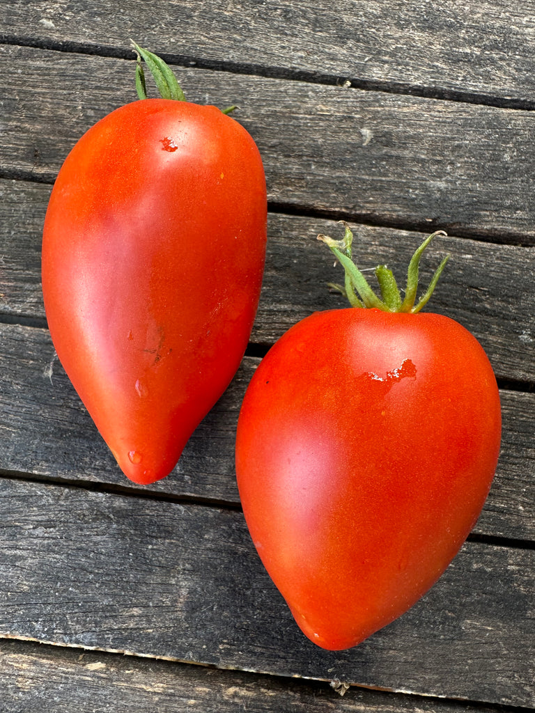 Fruits de 180 à 250 grammes à robe rouge brillante.