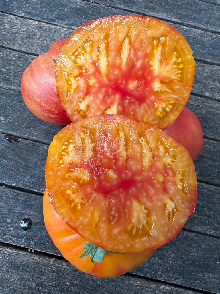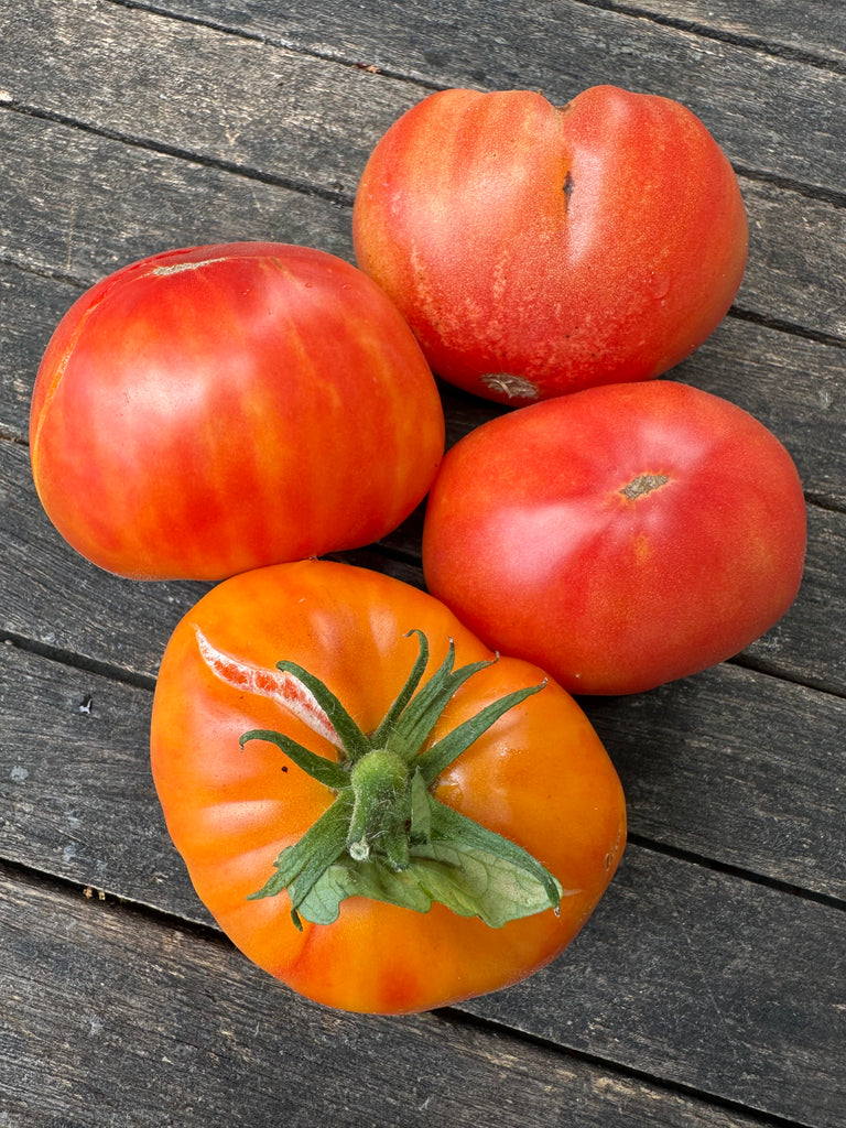 Fruits cordiformes de 200 à 250 grammes à robe bicolore.