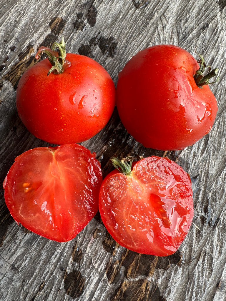 Grosse grappe de fruits plus ou moins cordiformes, rouges, ceux du premier bouquet étant plus gros que ceux des suivants.